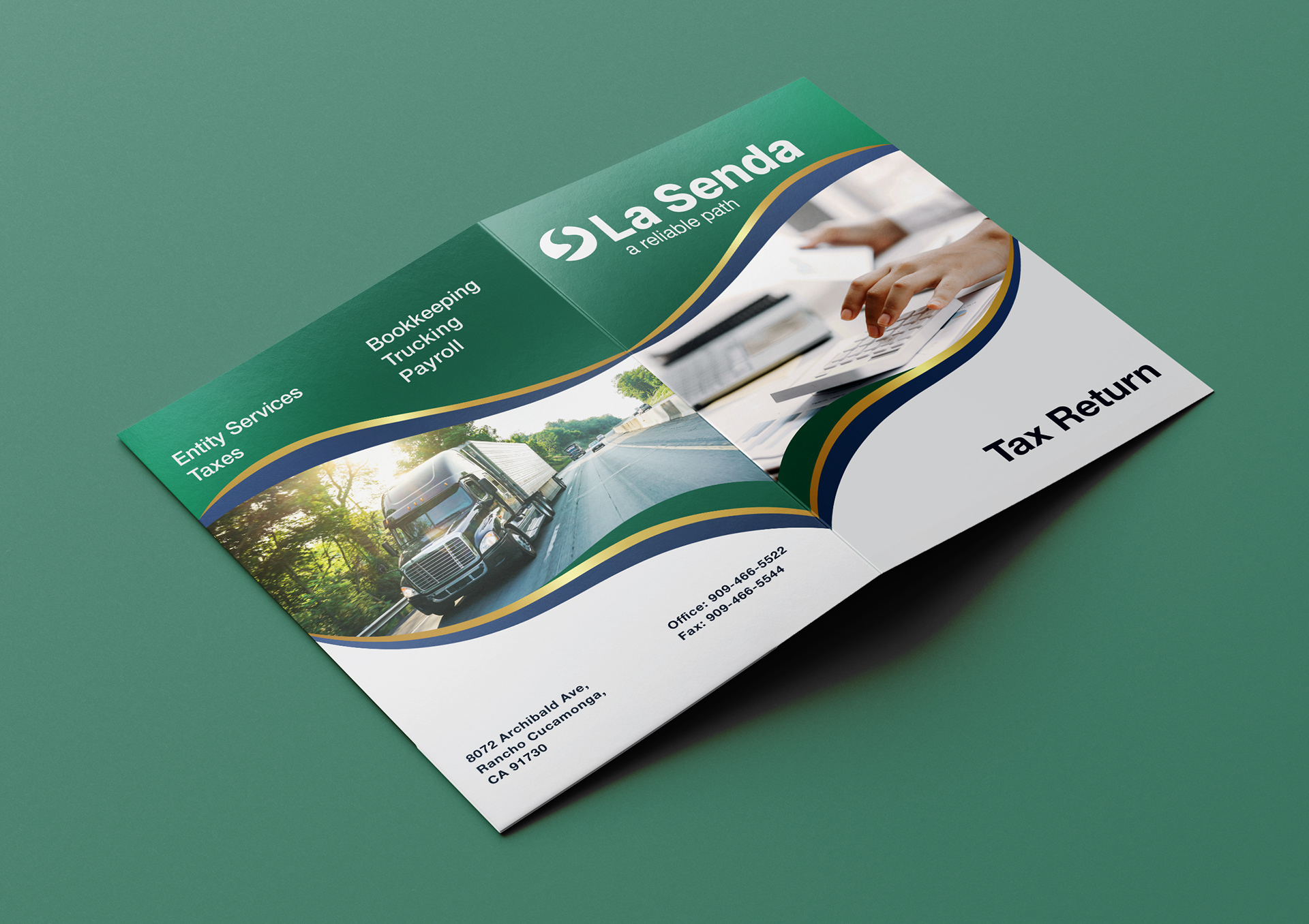 La Senda Enterprises commissioned me to design tax report folder covers and new business cards after introducing their updated logo. The client requested a clean, corporate, and professional look. I developed simple, structured layouts that highlight the new branding while keeping the materials polished and easy to read